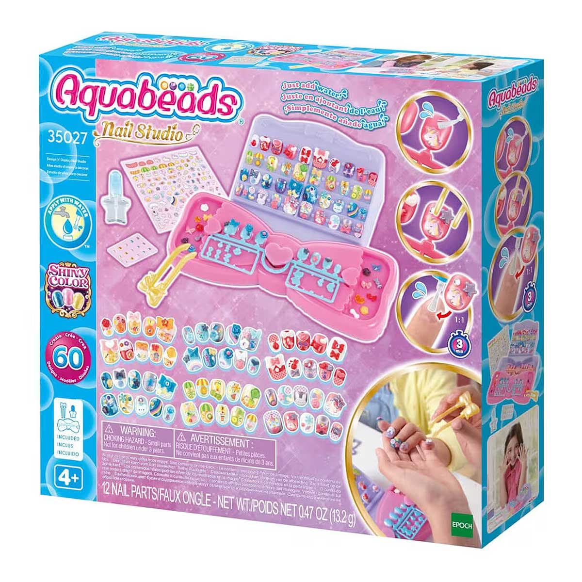 ΠΕΡΙΓΡΑΦΗ ΠΡΟΪΟΝΤΟΣEPOCH 35027 - Στούντιο Νυχιών Design ‘n’ DisplayΚατηγορία : EPOCH AQUABEADS Το Aquabeads είναι το αυθεντικό κιτ χειροτεχνίας που ενεργοποιείται με το νερό! Από το 2004, τα παιδιά σ' όλο τον κόσμο έχουν δημιουργήσει εκατομμύρια σχέδια με Aquabeads. Με τη νέα σειρά Aquabeads Nail Studio, μπορείτε να φτιάξετε όμορφα νύχια Aquabeads χρησιμοποιώντας απλώς νερό βρύσης για να δημιουργήσετε και να φορέσετε τις δημιουργίες σας! Το Aquabeads Nail Studio - Design 'n' Display Nail Studio περιλαμβάνει νύχια Aquabeads και διακοσμητικά για περισσότερα από 60 σχέδια νυχιών, τραπέζι εργασίας, πλαστικό τσιμπιδάκι, απλικατέρ νερού με πινέλο, αυτοκόλλητα, βάση παρουσίασης και οδηγίες. Τα γυαλιστερά νύχια και διακοσμητικά Aquabeads προσθέτουν λάμψη και αστραφτερή αίσθηση στις δημιουργίες σας για νύχια Aquabeads! Ακολουθώντας το φύλλο σχεδίασης, δημιουργήστε όμορφα σχέδια νυχιών με μοτίβα όπως αστέρι, κορδέλα, ζώο, φρούτα, λουλούδια και πολλά άλλα. Όλες οι δημιουργίες νυχιών Aquabeads είναι επαναχρησιμοποιήσιμες και μπορούν να φορεθούν πολλές φορές! Για παιδιά από 4 ετών και άνω. Το Aquabeads δημιουργήθηκε από την Epoch Co., Ltd. το 2004 ως το αυθεντικό παιχνίδι με χάντρες "που κολλούν μεταξύ τους με το νερό". Δεν είναι κατάλληλο για παιδιά κάτω των 3 ετών λόγω μικρών εξαρτημάτων. Μέγεθος συσκευασίας: 26 x 6 x 24 cm ΧΑΡΑΚΤΗΡΙΣΤΙΚΑ ΠΡΟΪΟΝΤΟΣ